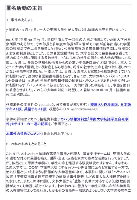 「甲南大学学生自死事件」のChange org署名を始めました!是非ご署名と拡散をお願いします❕